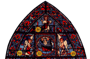 Cliquer sur les panneaux du vitrail pour lire l'histoire