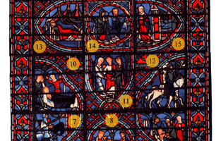 Cliquer sur les panneaux du vitrail pour lire l'histoire